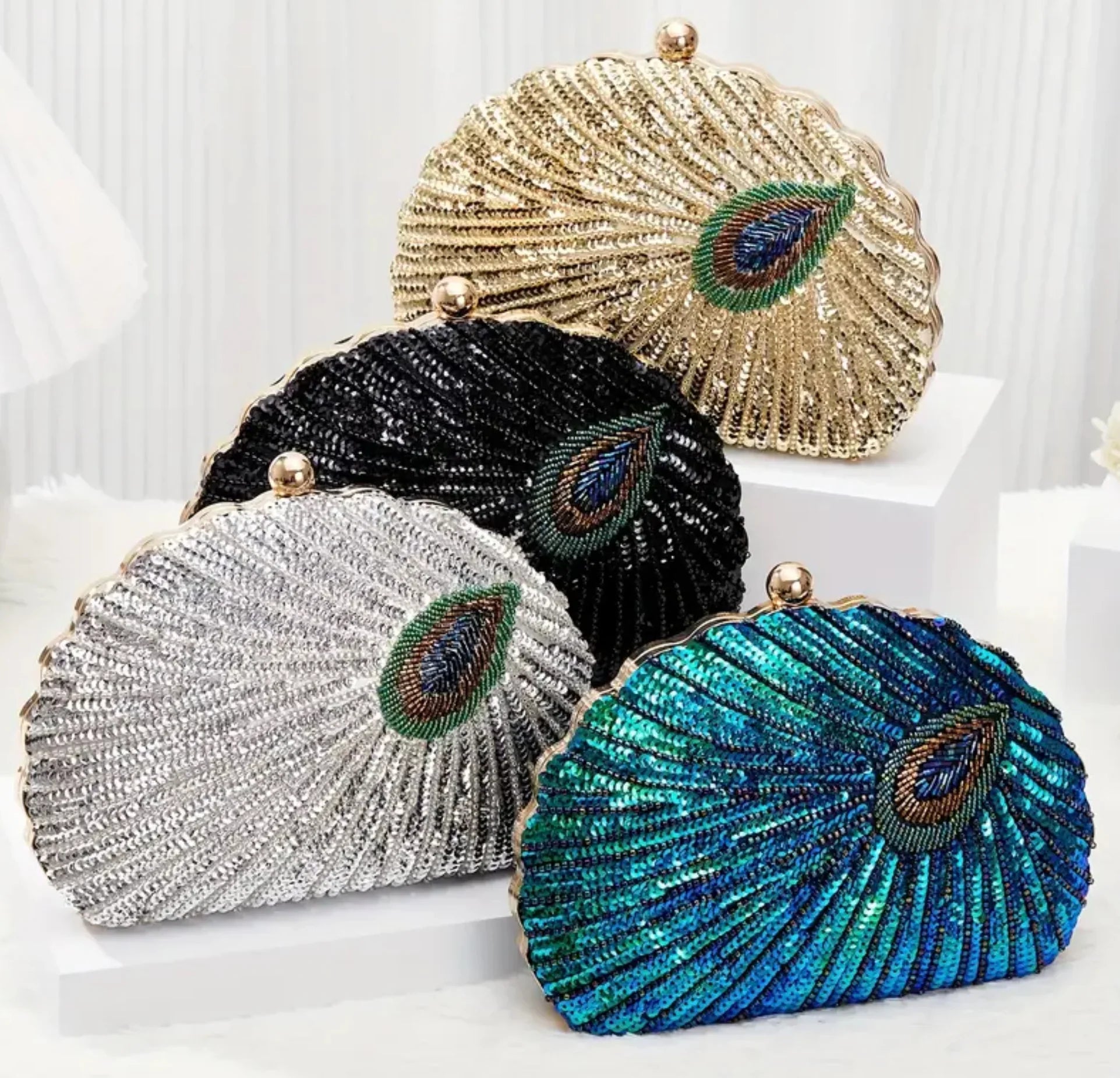 • Sculptural Peacock Fan Design – nature-inspired silhouette with dimensional feather detailing