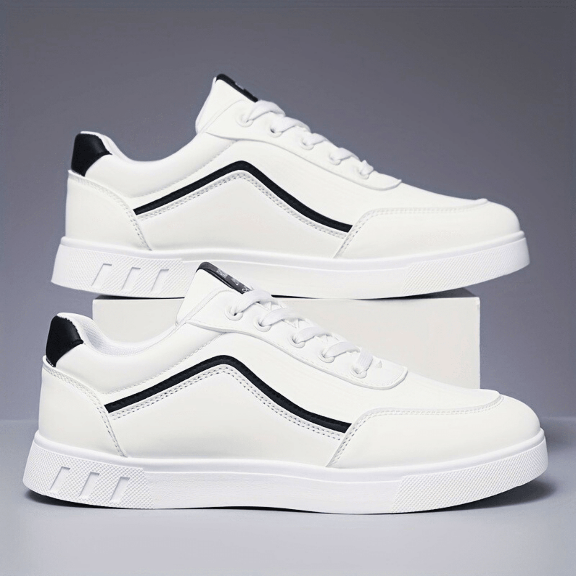 • Signature White Contrast Stripe — a single sweep of precision detailing that defines the silhouette