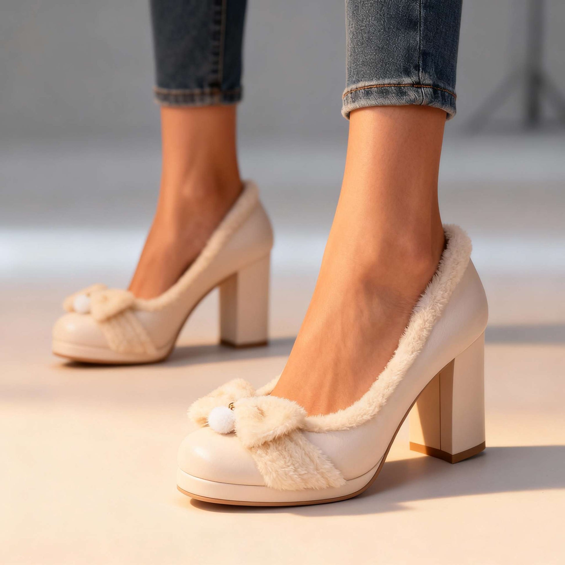 • Plush Shearling Trim & Bow – luxurious texture that elevates every step
