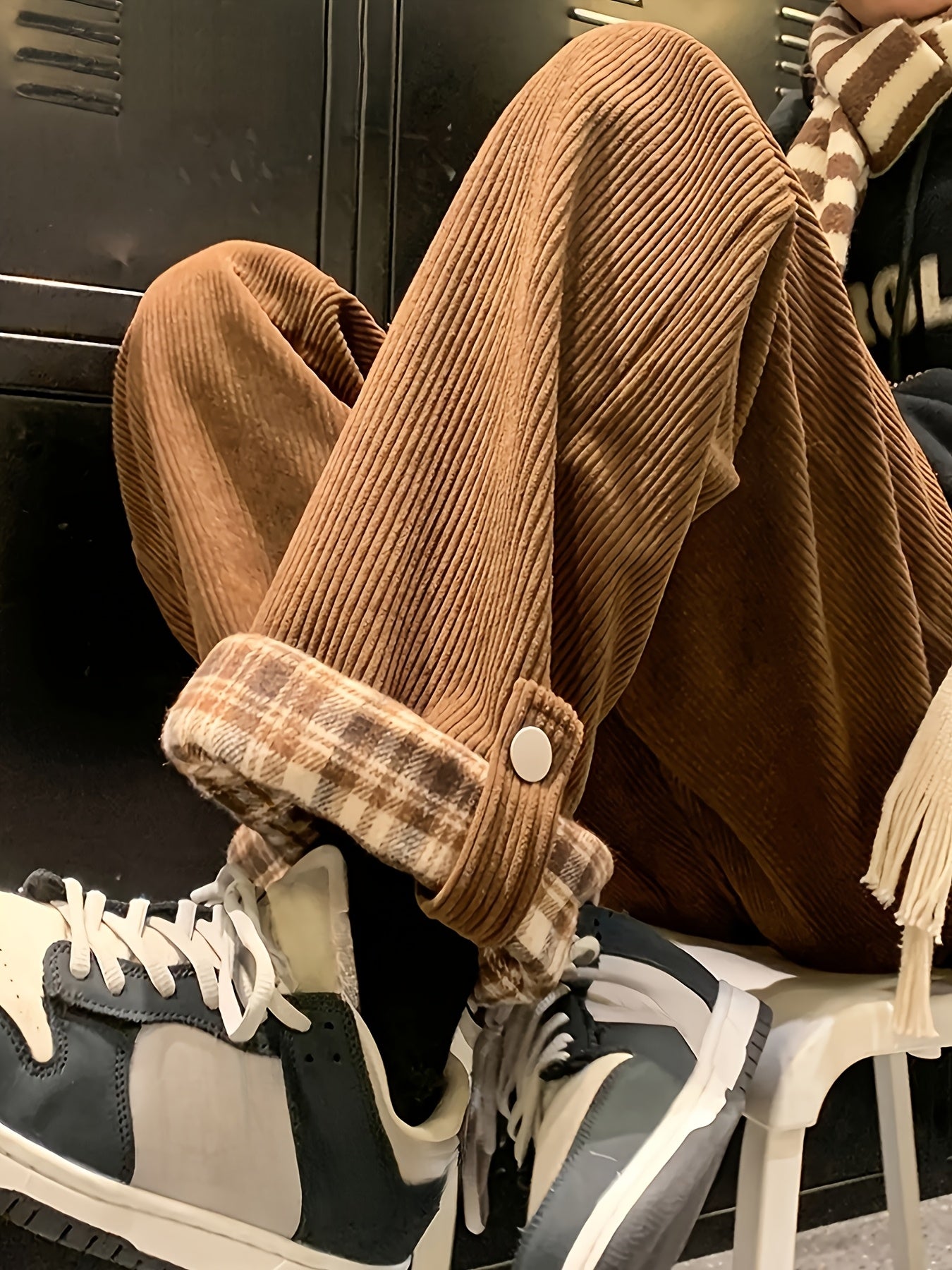 Crafted from premium wide-wale corduroy with a luxuriously soft hand-feel, the Princeton Trouser redefines casual sophistication. This isn't ordinary loungewear—it's a thoughtfully constructed piece that bridges comfort and refinement with architectural ease. The relaxed, wide-leg silhouette offers freedom of movement while maintaining a polished drape, while the signature plaid-lined cuffs add an unexpected touch of heritage detailing that elevates every step. An adjustable drawstring waist ensures a personalized fit without sacrificing the trouser's clean, tailored aesthetic.