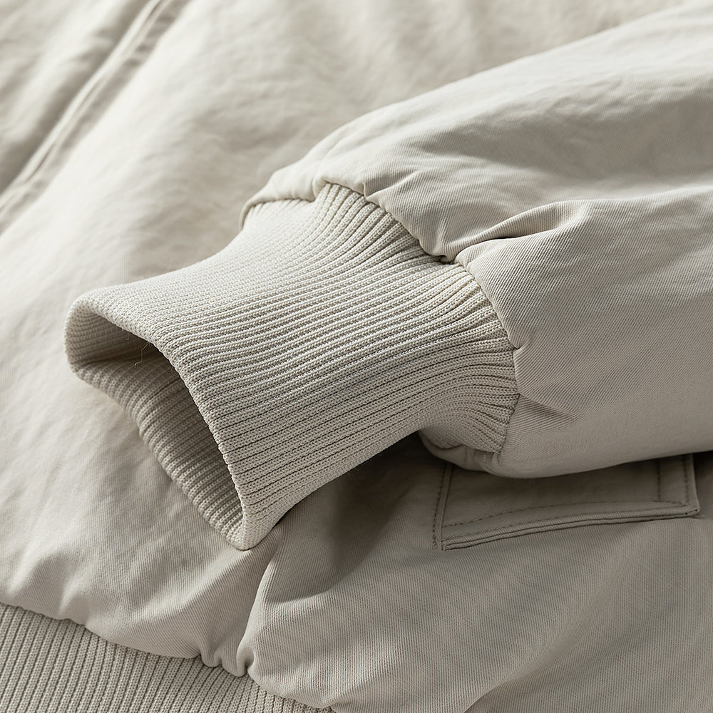 • Ribbed Knit Trim – elastic cuffs and hem for temperature regulation and classic bomber proportion