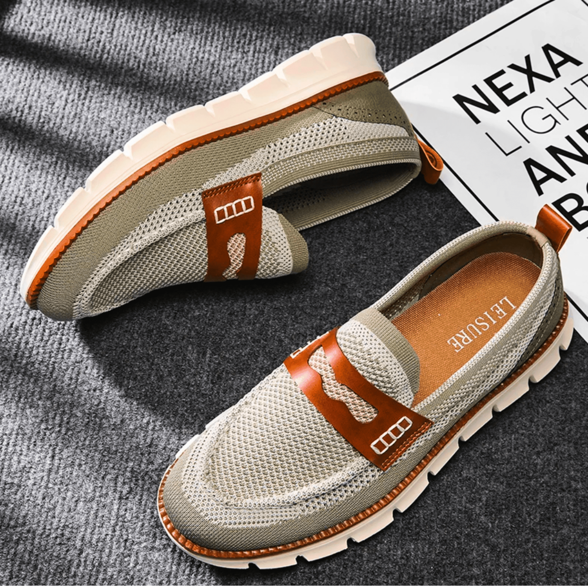 Precision-engineered breathable mesh meets refined leather accents in this contemporary loafer that redefines warm-weather sophistication. The lightweight athletic sole and ventilated upper construction deliver exceptional comfort while maintaining the polished aesthetic expected of premium footwear.